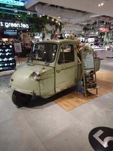 【ダイハツ・ミゼットはダイハツ工業が1957年(昭和32年)から発売された軽三輪トラックです。大川ではほとんどの家具が馬車による輸送でしたが、三輪車トラックの普及により、家具や木材の輸送手段として使われる様になった。 】