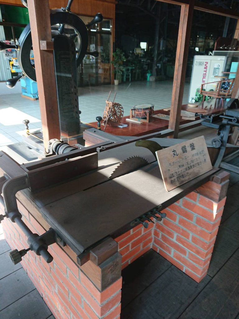 大正1 1年に大川で最初に機械が導入された、その時代の松本由太郎の機械が大川木工産業資料館に保存されています。