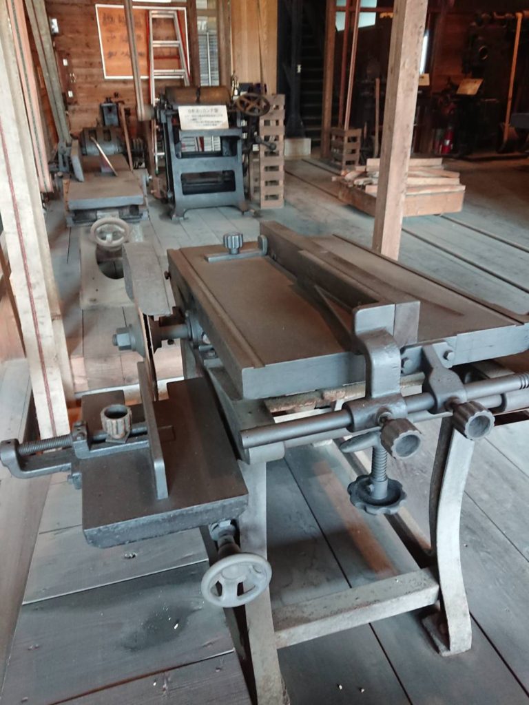 大正11年に、問屋を営んでいた松本由太郎(藪町)が「丸鋸、帯鋸、カッター、手押し鉋盤、自動鉋盤、角のみ盤」等の木工の基本的な機械(道具のような機械)が初めて導入されました。